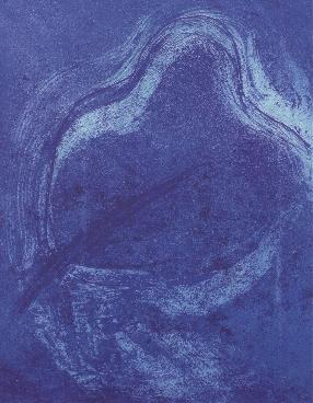 Diciembre, y que yo titulo para mí El gran azul, porque es una pieza abstracta de un poderío cromático inusitado. Es un delirio del azul, es una presencia fantasmal a un tiempo maternidad y cumbre, o naturaleza desatada que quiere personificarse con un rayo en los brazos. Es un azul loco y próximo, convincente y fiero, solemne y épico: el gran azul del frío con los labios celestes, el gran azul del miedo, el azul grande que no puede dejar de amarse, porque nos hipnotiza y nos suelta, indefensos, ante su inmensidad: la gran ameba acuática, como la pupila delirante de un dios ebrio de azul; el azul de los siglos, el azul de diciembre.