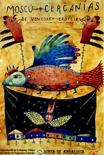 La atmósfera que lograba la escenografía combinaba su verismo con cierta dimensión misteriosa, llena de resonancias y de matices y todo gracias a un juego de luces conformador tanto de espacios (la realidad, el recuerdo) como, en una cambiante metamorfosis, de luchar contra la fijeza del decorado del fondo: una fachada de estación que se convertía en todas las estaciones debido a su mutación permanente, pero que a mí me transmitía -única y todas- su bocanada de nostalgia imparable. Esa atmósfera, justamente, servía de marco a la yuxtaposición de escenas, de encuentros distorsionados por el aumento gradual de la borrachera y del delirio. Escenas enmarcadas de una vida en zig zag desde el pasado: la fábrica, el descrédito como capataz que culmina en sarcasmo; su paternidad frustrada; su amor a la literatura, que a veces se repunta de la ironía y el ingenio que da la lucidez recobrada en medio de la locura etílica... hasta el presente, con el amor furtivo como asidero último, el amor que aguarda en Petushki. Mientras tanto Eroféiev se irá ahogando lentamente en el alcohol que ingiere, en medio de una lucha interior desesperante, en la que parece estar descartada cualquier posible bonanza.