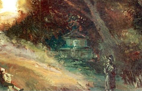 Pero hay incluso detalles como el que se refiere poco antes de la entrada al cementerio. Al igual que en muchos lienzos célebres se cuela el artista y aparece como uno más en medio del concierto de rostros de la escena, aquí también se singulariza y desliza un apunte incluso físico que vuelve a echar mano de la naturaleza como referente. Y así vemos al poeta, tras cruzar la puerta del camposanto, dentro del cuadro, aunque apartado del grupo, reflexionando sobre su propia realidad, sobre su propia vida, tras el paso del tiempo que nos dice de su estampa: