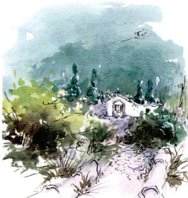 Dos artistas acompañan con su obra la edición, dos estilos distintos. Blas Ferrer con sus tablas nos deja un halo dieciochesco en las composiciones. Nubes luminosas, estatuas escondidas entre los árboles y siluetas de paseantes a la hora musical de una tarde eterna. La noche azulenca también asoma y el ángel que vigila a los yacientes junto al ciprés que es tótem de los sueños. Balbastre opta por la acuarela ágil o las técnicas mixtas (tinta china, aerógrafo, acrílico) para ofrecernos estampas variadas: el cementerio feraz de verdes copiosos y azules aturquesados; la plaza sobria con apunte de fuente; el camino simbólico de árboles descarnados, espectros en hilera en una atmósfera añil y delirante, o las almas aladas en su ascenso imparable a través de un torbellino de niebla en medio de la noche profunda. Escenas que, a su modo, interpretan la emoción de los versos y dejan su propuesta escenográfica; colores, formas para el